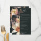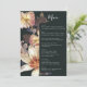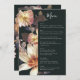 Este é um cartão de rack ou comida de casamento e menu de vinho. Lindos Verdes, Esmeralda, Antica, Vintage, Romântico O menu Casamento com um lindo gráfico floral elegante. Lindas cores antigas e charme vintage em um fundo esmeralda. Temas de casamento formais e boêmicos se adequam perfeitamente a este menu de vinho e comida e acrescentam romance à sua celebração.