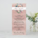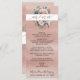 Aprecie seus hóspedes com este cartão de menu refinado em espanhol. O mesmo design também está disponível em inglês. Design coordenando nossos convites "Pastel Floral Quinceañera". Separe o design com um fundo rosa dourado e buquê floral único, cor-de-rosa, champanhe, magenta, berry, burgundy, azul pálido e marinho. Detalhes da caligrafia escrita à mão moderna, tanto na frente como no verso. Belo design de ouro rosa atrás com grande buquê floral com faixa central com detalhes de ouro rosa, e nome da quinceañera. Parte da nossa coleção "Pastel Floral".