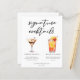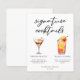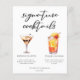Esta ficha de cardápio de coquetéis de assinatura sofisticada apresenta uma tipografia negra simples acima de 2 das suas bebidas favoritas e seus ingredientes para o seu bar de casamento costeiro. Um chic Espresso Martini e Tequila Sunrise adicionam um talento divertido ao seu menu de bar. Preencha com os nomes dos casais e a data para sua recepção.