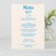 Um menu janto de casamento preto e branco, cor retrógrado e moderno. Que apresenta modelo design de chic de fundo leitoso cremoso e tipografia escrita com a mão azul de Marselha. Com coquetéis desenhados à mão. Perfeito e compatível com toda a suíte.