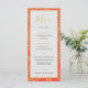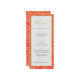 A tipografia moderna do estilo indiano laranja e cor Dourada é a base para esta design de casamento na moda. Todas as informações são facilmente alteradas para fazer seu próprio menu de casamento personalizado. Parte de uma suíte de papéis de carta do Chessie's Fine Designs.