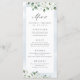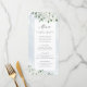 Moldura branca de cor aquática moderna, verde floral de eucalipto e moldura de cor dourada em fundo azul empoeirado, com guião de menu de tendências, elegante e na moda, menus de casamento de excelente para casamento rústico, casamento botânico e casamento de praia em primavera e verão. Ver todas as peças correspondentes na coleção