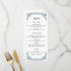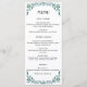 Elementos: pintura aquosa, moldura de cheio, verde, folhas, eucalipto, tipografia serif. Cores: verde, azul, sábio, menta, aqua e branco com tipografia preta quente. Temas: jardim, natureza, botânica, romântica, ao ar livre, capricho, folhagem, luz e brilho, safra, elegante. Coleção: Eucalyptus Greenery Frame Green Blue Black Wedding Suite. Tipo de produto: Menu
