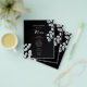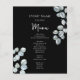 Abstrato Preto e menu de eucalipto com aquarela. A fonte do script é realçada com a fonte de nome de serif de leitura fácil. Fácil de ajustar para as suas necessidades de casamento. Faça seu próprio menu, use seu próprio texto para criar um menu elegante, porém barato e barato de eventos. É fácil personalizar. Folhas de papel de menu personalizadas.