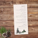 Elementos: cena de montanha de aquarela com fontes serif elegantes e contemporâneas. Cores: verde, verde-caçador, verde-terras altas, branco, névoa branca, cinza, ardósia. Temas: casamento moderno, ao ar livre, montanhas, rústicas, florestais, ao ar livre, florestas, florestas, natureza, caminhada, montanhas rochosas, serra nevadas, montanhas de serra azul, montanhas de cordilheira fumosa. Coleção: Evergreen Mountain Mist Rustic Casamento no inverno Collection. Tipo de produto: Menu
