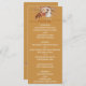 Avise aos seus hóspedes o que está no menu da sua recepção de casamento usando este buquê floral de outono no menu do casamento ouro.