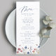 Watercolor floral wildflower field with modern script in navy blue and burgundy red, elegant and sophisticated, great personalized menu cards for rustic fall wedding, classic garden wedding, and boho winter wedding.