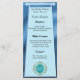 Um menu elegante com um padrão azul e folha de folhas e seu número de aniversário exclusivo em brilho e ouro.