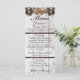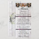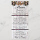 Apresentando um fundo de madeira de casca com fita roxa, rendas, ferraduras com nós e buquês de flor selvagem na frente com um monograma no verso. Estes menus são excelentes para o país ou fora do casamento. Alterar as fontes pode criar um programa mais elegante ou rústico. Projetado para coordenar com a coleção "Gettin' Hitched - Horsferes, Ribbon & Lace". Para alterar os detalhes, clique em "Personalizar". Para mover o texto ou alterar o tamanho, a fonte ou a cor do texto, clique em "Clique para personalizar mais"