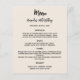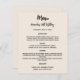 Fundo bege. Texto preto. Personalize e adicione seu nome, data e menu. Você pode adicionar mais texto, fotos no verso. 1 folha = 1 menu impresso borda a borda.