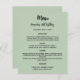Um fundo verde sábio. Texto preto. Personalize e adicione seu nome, data e menu. Você pode adicionar mais texto, fotos no verso. 1 folha = 1 menu impresso borda a borda.