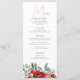 Poinsettia Watercolor Ornament Christmas Party Menu (Menu da festa de natal do Ornamento por Aquarela) com roteiro elegante para a festa de Natal moderna.
