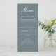 This menu card coordinates seamlessly with matching invitations, table numbers, place cards, and signage.