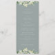 Um menu de casamento de inverno de quatro pratos em azul-esverdeado suave, apresentando uma borda de nevascas e eucalipto pintados à mão na frente e uma coroa na parte de trás. Todo o texto é totalmente editável, e os pontos espalhados na frente e no verso podem ser excluídos antes de encomendar, se preferir. Por favor, visualize esta Coleção na minha loja para menus com arranjos florais alternativos e em diferentes tamanhos/cores/formatos. Itens coordenados também disponíveis.