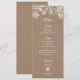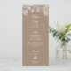 Elegante cardápio de casamento da Maravilha de inverno com flocos de neve brancos em fundo de papel kraft. Excelente para casamentos temáticos de Natal, jantas de Véspera de Ano Novo e outros eventos sazonais e de feriados.
