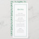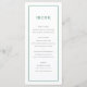 Um delicado esquema de cor verde cria uma sensação romântica crônica a estas vintagens encontra menus modernos de casamento. A frente apresenta a tipografia moderna em um layout abotoado enquanto os pop traseiros com florais distantes. Personalize para seu próprio evento e emparelhe com as peças do conjunto de coordenação.