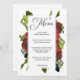 Uma bela e elegante escolha floral, este design de Menu apresenta um buquê floral de rosas vermelhas. É uma escolha encantadora para casamentos em todas as estações. Edite o modelo de design simples com as informações do menu recepção de casamento. Você pode alterar as fontes, adicionar ou remover linhas de texto e reformular este modelo para se adequar ao seu estilo e preferências pessoais. Elementos florais usados neste design de createtecut.