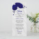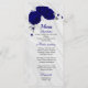 lindas flores azuis reais e cinzas prateadas deixam um belo cardápio de casamento.