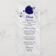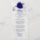 lindas flores azuis reais e cinzas prateadas deixam um belo cardápio de casamento.