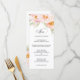 Um cardápio maravilhosamente romântico projetado para casamentos ou outros banquetes com peões rosas e penteados em tons sutis de aquarela. Edite o texto de exemplo com as seleções de menu desejadas.