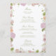 The design features a stunning watercolor floral frame that artfully combines delicate hydrangeas and roses. Rendered in various shades of pink and light green, the flowers create a serene and inviting ambiance, evoking the freshness and vibrancy of a blooming spring garden. An elegant calligraphy script adds a touch of sophistication and romance, ensuring your wedding menu details are presented with clarity and style.