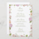 The airy and uncluttered layout allows the intricate floral design and elegant script to shine, enhancing the overall elegance and making it a timeless piece that resonates with guests of all ages. Ideal for spring or summer weddings, this menu's harmonious blend of colors and design elements suits a variety of themes, from garden ceremonies to elegant ballroom affairs.