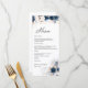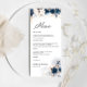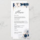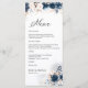 Marinho Azul e Dusty Rosa Floral Menu de Casamento. Este na moda e elegante Convite para Chá de Casamento apresenta um lindo Marinho de cor d'água, pintado manualmente, azul e Rosa Dusty Floral. Localize itens correspondentes na Coleção Floral Marinho Azul e Dusty Rosa.