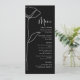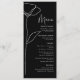 Este floral branco arrojado sobre fundo preto é um menu mínimo e moderno para o seu dia especial. Personalize todas as informações com seus detalhes
