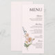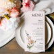 Melhore a sua mesa de casamento com este cartão de cardápio floral de primavera romântico, uma bela adição a qualquer casamento temático de primavera ou jardim. Apresentando sotaques florais de pasta mole e tipografia refinada, esse cardápio complementa a elegância de um tema romântico de casamento, ao mesmo tempo que oferece aos hóspedes uma prévia encantadora da refeição a ser feita. Ideal para jardins e casamentos ao ar livre, ele adiciona um toque coeso e na moda à sua cola, ajudando-o a criar uma experiência memorável de jantar. Personalize com suas seleções de menu, de aperitivos a sobremesa, e combine-as perfeitamente com sua outra papelaria de casamento para uma aparência perfeitamente coordenada.