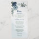 Lindas flores brancas românticas, azuis empoeiradas e marinhos azuis com folhas verdes cardápio de casamento botânico. PARA MAIS PRODUTO CORRESPONDENTE, clique na coleção acima ou entre em contato comigo.