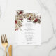 Cardápio de casamento com lindas flores vermelhas e brancas de Dogwood.