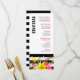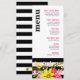 O cardápio de janto de casamento divertido mostra um monte festivo de flores folclóricas contra listras modernas, pretas e brancas. Clique no botão PERSONALIZAR TI para adicionar texto. Vinculando convites para casamento, salvar datas, vice-presidentes, coquetéis de guardanapos & mais disponível. Para perguntas ou solicitações sobre outros itens com este design, entre em contato com:cheryl@cheryldanielsart.com. Flores de Folclore Preto e Branco, tiradas por Cheryl Daniels 2015.