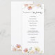 Um cardápio perfeito para um bebê ou chá de panela temido de flor silvestre. Apresentando flores silvestres e verde de cor aquosa. Itens correspondentes na Coleção de Flores de Bloqueio Rosa encontrada no compro Adore Paper Co no Zazzle. Personalize com o texto do menu para um brunch, almoço ou janto.