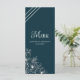 Lírios brancos simples e bonitos desenhados à mão e linhas diagonais brancas em fundo azul escuro. Lírios e linhas estão localizados nos cantos superior e inferior