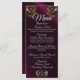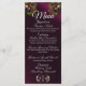 A frente apresenta buquês de flor silvestre em lindas cores de verão em um fundo roxo com detalhes do menu e um monograma de folhas com link. O verso tem um espaço reservado para o monograma foliar ligado também. Alterar as fontes pode criar uma aparência mais elegante ou rústica. Disponível em várias cores para seu tema de casamento. Projetado para coordenar com a coleção Rustic Wildflower & Ribbon. Para alterar os detalhes, clique em "Personalizar". Para mover o texto ou alterar o tamanho, a fonte ou a cor do texto, clique em "Clique para personalizar mais"