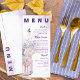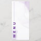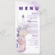 Flores No Menu De Festa de casamento Floral Mason Jar Purple . Adicione um toque de elegância rústica ao seu dia especial com nosso "Flores no Mason Jar Purple Floral Festa de casamento Menu". Este cartão de menu maravilhosamente desenhado apresenta uma ilustração encantadora de aquarela de flores roxas e verdes, aninhadas em um vidro clássico de mason, perfeito para casamentos, chás de panela ou qualquer celebração romântica. As suaves, mas vibrantes, matizes de lavanda, lilás e verde-sábio evocam uma charmosa vibração no interior enquanto mantêm uma estética sofisticada. O layout do menu está limpo e organizado, permitindo amplo espaço para listar aperitivos, entrenes, sobremesas e bebidas de uma forma fácil de ler e visualmente atraente. Impresso em papel personalizável de alta qualidade, este menu não só serve como um guia prático para seus convidados, como também dobra como um guardião para comemorar seu evento inesquecível. Totalmente personalizável, você pode personalizar o texto para corresponder às ofertas de menu e aos detalhes do evento. Ajuste fontes, tamanhos e cores para combinar-se perfeitamente com o tema ou decoração do casamento. Quer o seu evento ocorra em um jardim, celeiro ou banquete, este design de menu melhora sem esforço o ambiente e gravatas a decoração juntos. Celebre sua história de amor com este carinhoso menu que combina encanto rústico e elegância eterno. É o toque final perfeito para o seu dia especial, garantindo que cada detalhe reflita seu estilo e gosto únicos.