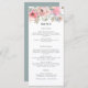 Elementos: arranjos florais de cor aquosa mole. Fontes de serif clássicas com acentos de script de capricho. Cores: azul empoeirado, pêssego, pincel, rosa, verde-sábio, marfim. Temas: primavera, verão, macio, botânico, cottage, cottagecore, romântico, vintage, jardim. Coleção: Flores Românticas De Algodão Esfregam Blue Sage Tipo De Produto Da Coleção De Casamentos: Menu