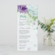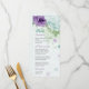 flores românticas azuis e roxas verdes folhas cardápio de casamento botânico
