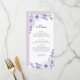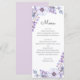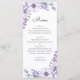 Menu Flores roxas de aquarela. Casamento floral violeta