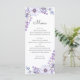 Um menu de casamento floral roxo de aquarela. Adequado para aniversário, aniversário e qualquer outra festa.