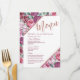 Flores elegantes, sofisticadas e rústicas em tons de rosa e roxo com tipografia em gliter dourado rosa impresso falso em lantejoulas em um fundo rosa bege claro, cartões de menu para recepção de casamento. Este design clássico e sofisticado é perfeito para recepções de casamento elegantes, sofisticadas e modernas. Personalize com o seu próprio cardápio na frente, juntamente com seus nomes e datas. Em seguida, personalize o verso com a inicial do seu monograma. Todos os designs são impressos a partir de fotos.
