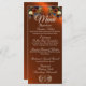 A frente apresenta buquês de flor silvestre com lindas cores do outono sobre um fundo de cobre com detalhes do menu e um monograma de folha ligado. O verso tem um espaço reservado para o monograma foliar ligado também. Alterar as fontes pode criar uma aparência mais elegante ou rústica. Disponível em várias cores para seu tema de casamento. Projetado para coordenar com a coleção Rustic Wildflower & Ribbon. Para alterar os detalhes, clique em "Personalizar". Para mover o texto ou alterar o tamanho, a fonte ou a cor do texto, clique em "Clique para personalizar mais"