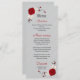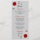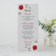 flores vermelhas e brancas com folhas prateadas menu de casamento Os detalhes da brilha são simulados