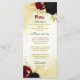 Menu flores vermelhas pretas ouro folhas casamento