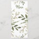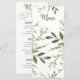 Adicione este Cartão de Menu de Casamento Verde para seus Acessórios de Recepção de Dia de Casamento. Projetado com folhas e galhos macios em tons claros e escuros de verde-verão em um fundo branco. Para personalizar, basta inserir os detalhes do menu no nosso modelo, substituindo o texto de exemplo. É rápido e fácil.