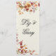 Este design apresenta cores caindo na forma de lindas flores aquáticas em um design com tipografia de script. Perfeito para o seu grande dia. Design oferece muito espaço para descrever sua deliciosa refeição em detalhes! Nomes de casais da sua escolha no verso, ou você pode deletá-los se quiser