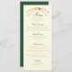 O romance do outono é capturado neste cardápio de casamento. Folhas caídas em cascata no cartão, em uma torrente de vermelhos, laranjas e dourados contra um fundo creme. As folhas de carvalho e de carvalho são destacadas. Um verde florestal profundo adiciona contraste ao fundo e dispara um monograma personalizável. A queda está no ar com este menu elegante.