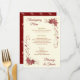 Um delicado design de outono/Ação de Graças que evoca folhas soprando no vento. As folhas de bordo deslizam pelo menu em meio a burgundy e ouro floresce. Algumas texturas de brilho dourado misturam-se com as espirais para sugerir o brilho do ouro do outono. O texto borgonha, dourado e laranja senta-se enquadrado em meio às folhas que caem e brisa sobre fundo creme. Um motivo perfeito para qualquer queda ou reunião de Ação de Graças!