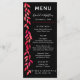 Folhas elegantes pintadas em tons de rosa quente a vermelho e laranja em um fundo preto com os detalhes do menu de recepção de casamento em caracteres quentes. CORRESPONDENDO a itens na nossa loja.