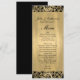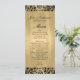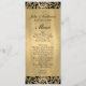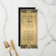 Menu de mesa de casamento de ouros longos e finos, feito com gráficos de um padrão de ouro antigo sobre uma borda preta, ao longo de cima e de baixo. Personalize o texto preto para seu dia especial. Aditamento maravilhoso ao nosso casamento Dourado e negro.